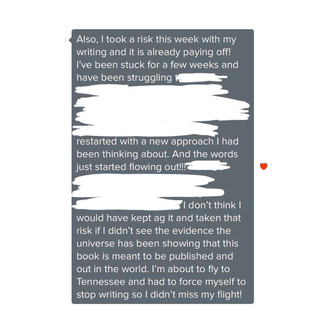 During our time working together, Lucia was able push through writer's block, overcome imposter syndrome, and make significant strides towards publishing her first novel.
